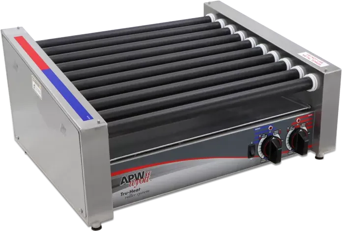 APW Wyott X*PERT series slant roller grills offer excellent versatility for product convenience. APW Wyott HRS-50S model come with our TRU-Turn non-stick surface rollers. Independent heating zones, front and back, allow operators to bring up product to temperature on one zone then transfer to the other zone for holding and serving. Larger and wider bearings offer years of dependable service while the self-aligning chain guide system provides smooth, noise-free operation.