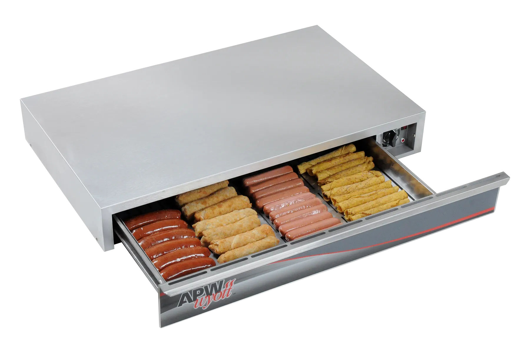 APW Wyott SPTU-30N Thermo Drawers are the perfect complement to your roller grill. Improve customer satisfaction with hot/fresh food in a timely fashion. It will improve your overall operations by minimizing waste and reducing labor all while adhering to HACCP food safety standards. Larger & Deeper drawer accommodates both standard & larger size products. Removable drawer utilizes heavy duty bearing/roller design for years of performance. Increase holding times for up to 6 hrs. without sacrificing quality and appearance of product. Saves space as it fits under current APW Wyott roller grills!