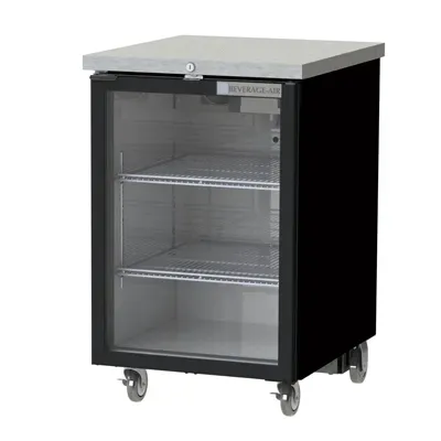 Unleash your kitchen's potential with the Beverage Air BB24HC-1-G-B Back Bar Cabinet. This refrigerated storage cabinet is designed to meet the needs of commercial restaurants, offering a spacious 7.66 cu. ft. capacity to store all your beverages and ingredients. The cabinet features a sleek black exterior finish, adding a touch of elegance to your establishment. With its glass door and LED interior lighting, you can easily showcase your selection to customers while ensuring easy access. The stainless steel top provides a durable and hygienic workspace, perfect for preparing drinks or plating dishes. The rear-mounted self-contained refrigeration system ensures efficient cooling, while the R290 Hydrocarbon refrigerant is environmentally friendly. With its UL EPH Classified and UL-Sanitation certifications, you can trust in the quality and safety of this made in the USA product. Upgrade your bar or restaurant with the Beverage Air BB24HC-1-G-B Back Bar Cabinet and elevate your business to new heights.