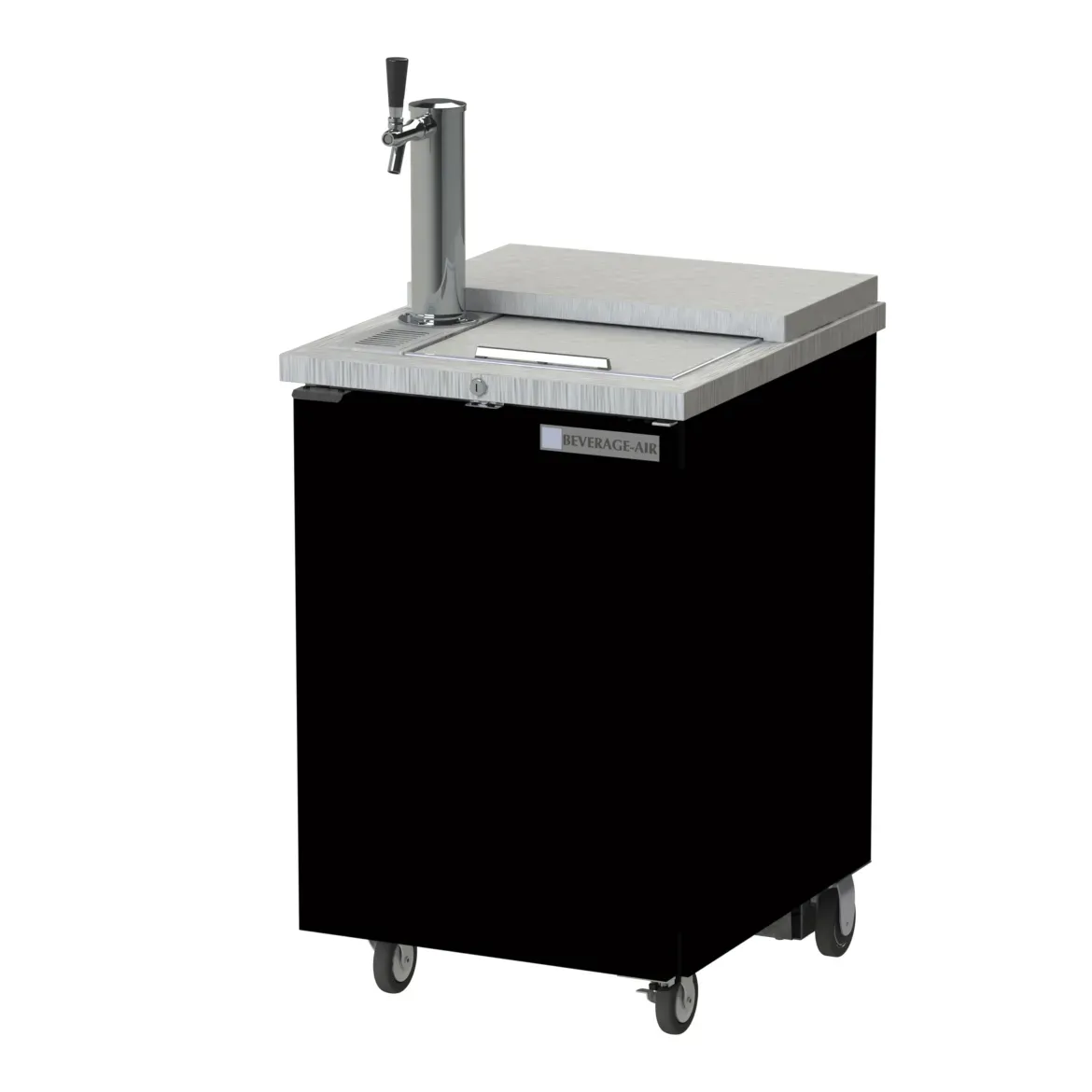 Culinary artistry redefined with the Beverage Air BM23HC-C-B Draft Beer Cooler. This portable cooler is a must-have for any commercial restaurant looking to elevate their beverage offerings. With a spacious 7.66 cu. ft. capacity, it can easily accommodate one keg, ensuring a steady supply of refreshing draft beer for your customers. The self-closing door with locks guarantees the security of your valuable inventory, while the galvanized interior and stainless steel floor provide durability and easy cleaning. The 3" insulated tower with a single faucet allows for convenient pouring, and the black exterior with a black club top and stainless steel lid adds a touch of sophistication to your establishment. With its self-contained refrigeration system and R290 Hydrocarbon refrigerant, this draft beer cooler is energy-efficient and environmentally friendly. Designed and made in the USA, the Beverage Air BM23HC-C-B Draft Beer Cooler is the perfect addition to any commercial restaurant seeking to enhance their beverage service.