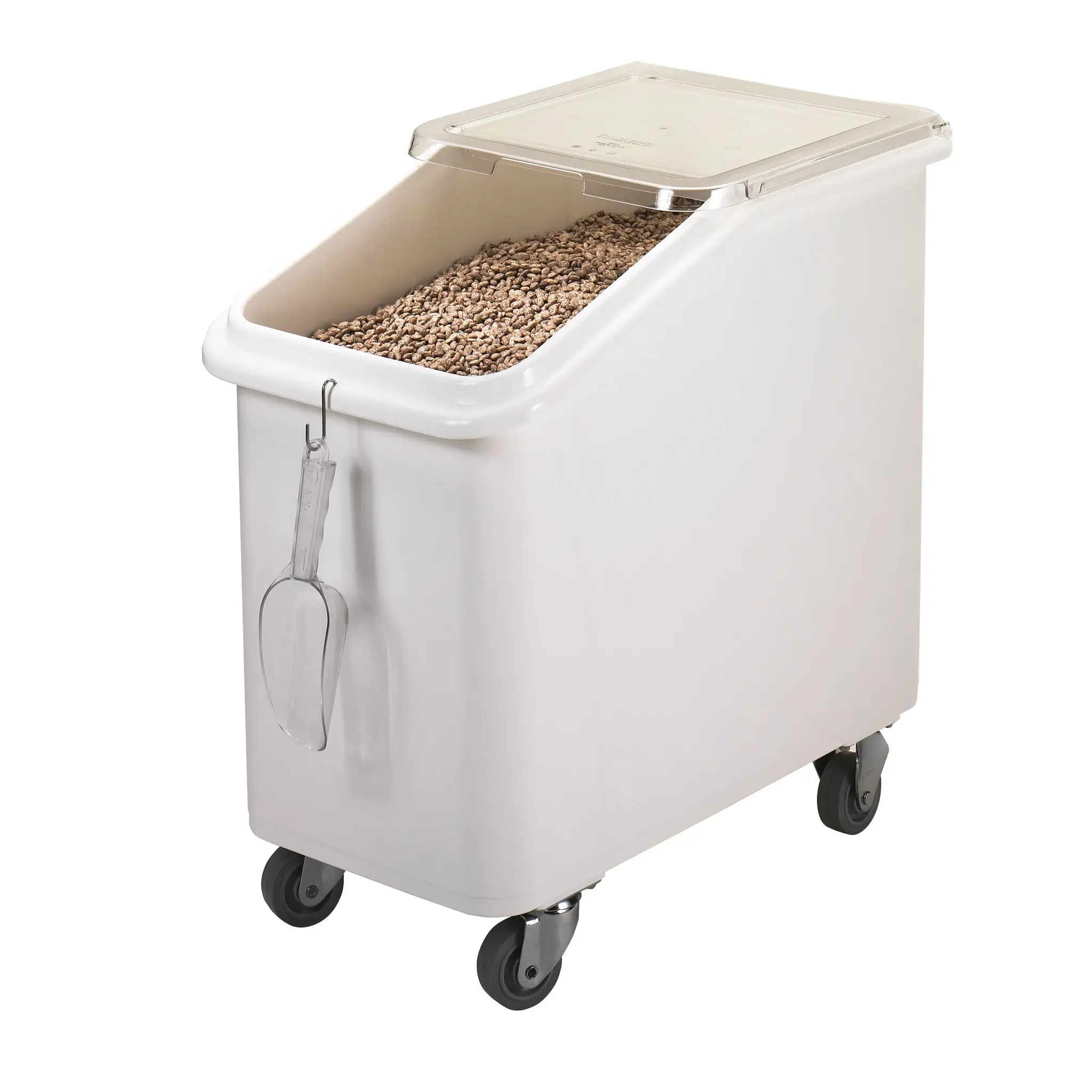 Innovate in the art of food service with Cambro's IBS27148 Food/Beverage Storage Container. Designed for commercial restaurant use, this 27-gallon slant top container is a game-changer in food and beverage storage. With its spacious capacity, it allows you to store a large quantity of ingredients, ensuring you never run out during peak hours. The white color not only adds a clean and professional look to your kitchen but also helps you easily identify the contents inside. Made by Cambro, a trusted name in the industry, this container is built to last, with durable materials that can withstand the demands of a busy restaurant kitchen. Its compact design allows for easy stacking, maximizing your storage space. Invest in the Cambro IBS27148 Food/Beverage Storage Container and experience the convenience and efficiency it brings to your commercial kitchen.