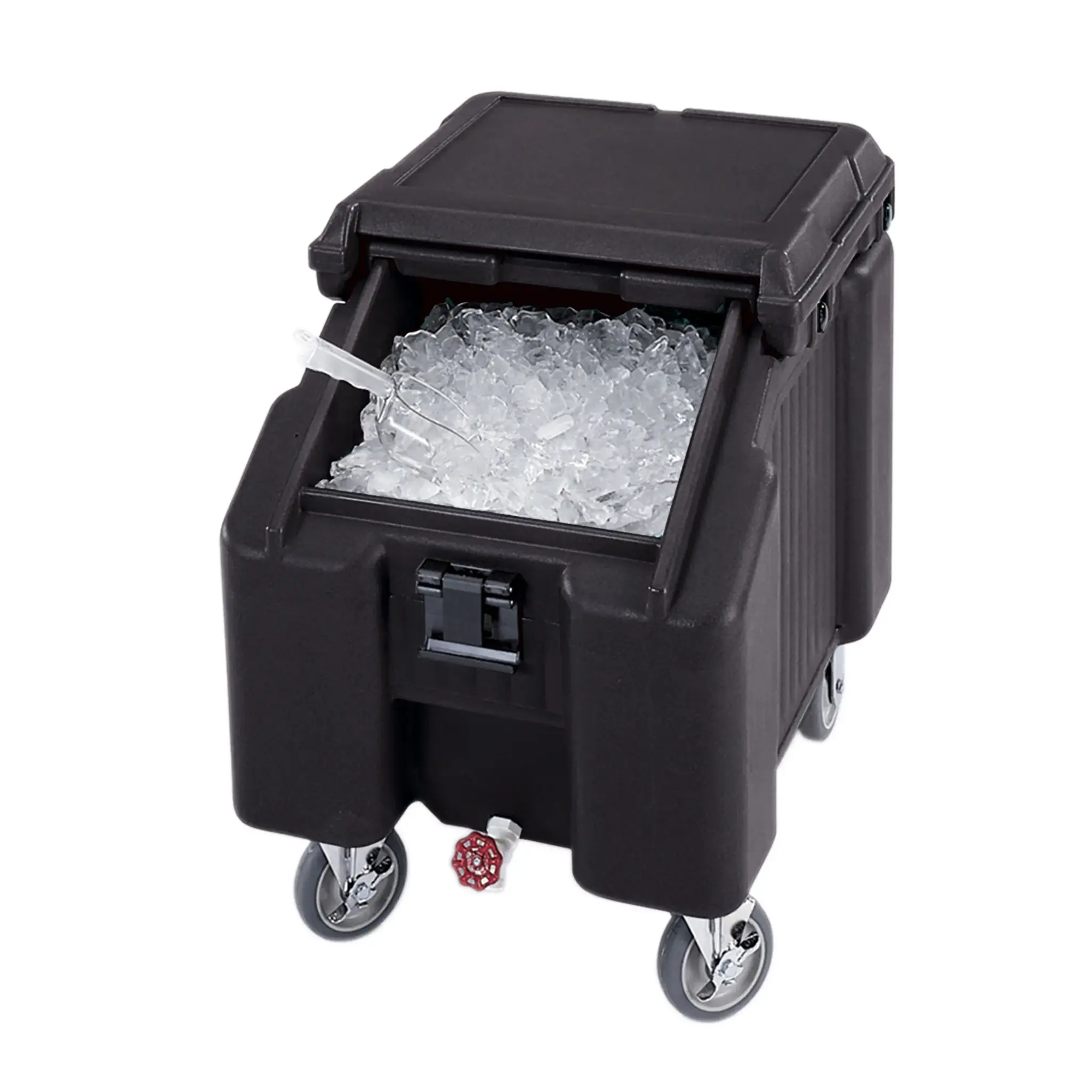 Stay ahead in the culinary landscape with Cambro's ICS100L4S110 Ice Caddy. Designed for commercial restaurant use, this ice caddy is a game-changer for your establishment. With a 100-pound capacity, it ensures you never run out of ice during peak hours, keeping your customers satisfied and your operations running smoothly. The caddy features four front swivel wheels, allowing for easy maneuverability, while the brake ensures stability when stationary. Its sleek black design adds a touch of sophistication to your restaurant's ambiance. Whether you're running a bustling bar or a busy buffet, this ice caddy is a must-have. Don't compromise on efficiency and convenience invest in Cambro's ICS100L4S110 Ice Caddy and elevate your restaurant's service to new heights.