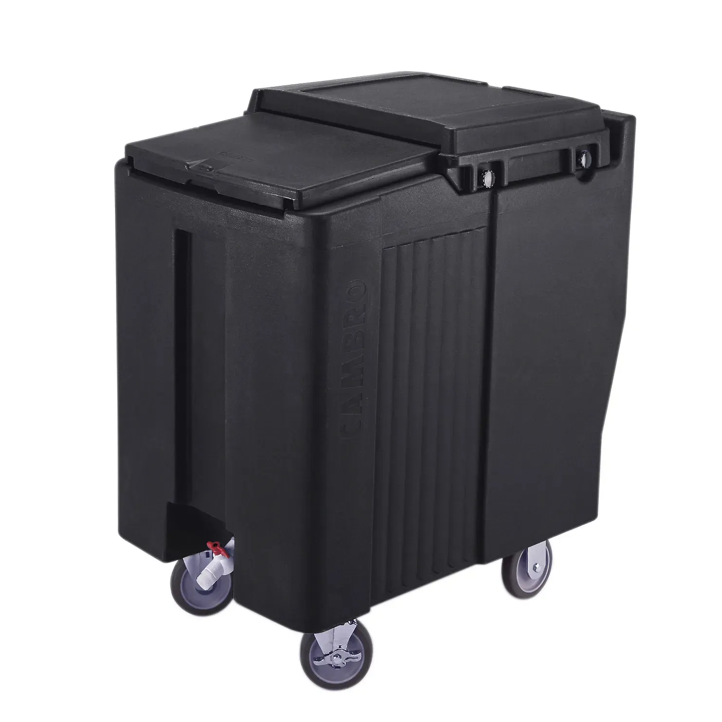 Upgrade your restaurant's capabilities with the reliable Cambro ICS175T110 Ice Caddy. Designed specifically for commercial restaurant use, this ice caddy is a game-changer for any establishment. With a 175-pound capacity, it can hold a large amount of ice, ensuring that your customers never run out during peak hours. The caddy features two fixed and two swivel wheels, making it easy to maneuver and transport ice from the storage area to the serving stations. The addition of a brake ensures stability and safety during transportation. Made by Cambro, a trusted vendor in the industry, this ice caddy is built to last and withstand the demands of a busy restaurant environment. Upgrade your ice storage and transportation capabilities with the Cambro ICS175T110 Ice Caddy and keep your customers satisfied with a constant supply of ice.