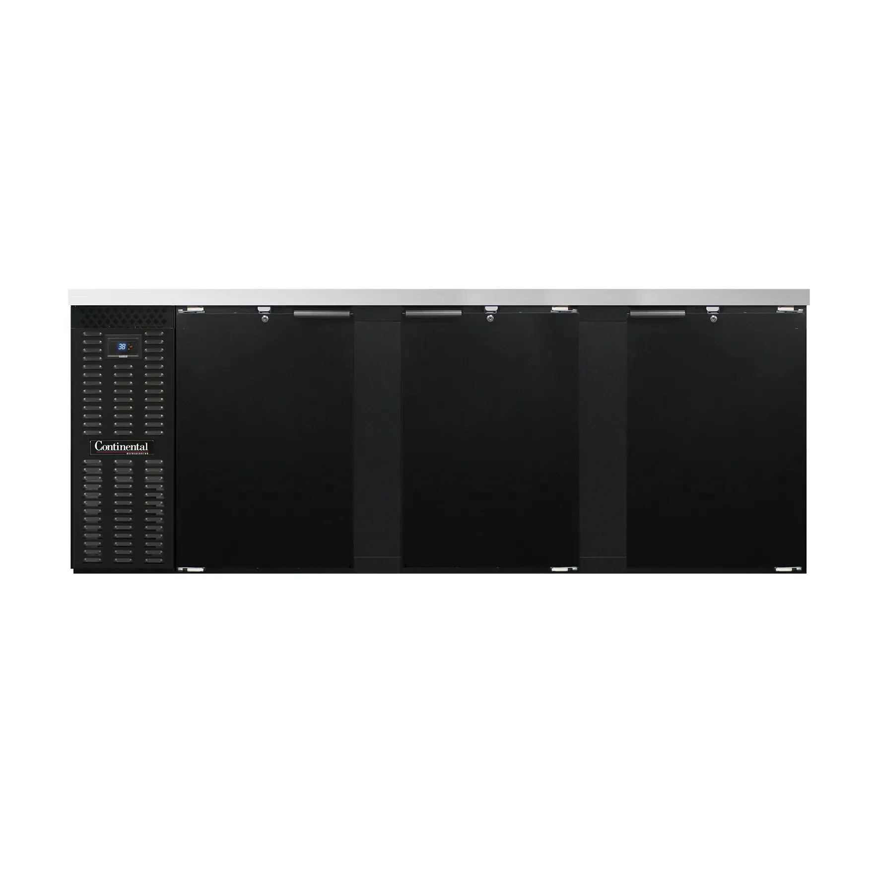 Experience kitchen innovation with the Continental Refrigerator BB90N Back Bar Cabinet. This refrigerated unit is designed to meet the needs of commercial restaurants, offering a spacious 35.0 cu. ft. capacity to store and cool your beverages and ingredients. The front breathing feature allows for easy installation, while the stainless steel top provides durability and a sleek appearance. With three doors equipped with locks, you can ensure the security of your valuable items. The electronic controller with a digital display and hi-low alarm allows for precise temperature control and monitoring. The black enamel finish exterior adds a touch of elegance to your establishment, while the galvanized interior with a reinforced stainless steel floor ensures longevity. The epoxy coated steel shelves provide ample storage space and are easy to clean. Made in the USA and certified by cETLus and NSF, this Continental Refrigerator BB90N is a reliable and efficient choice for any commercial kitchen.