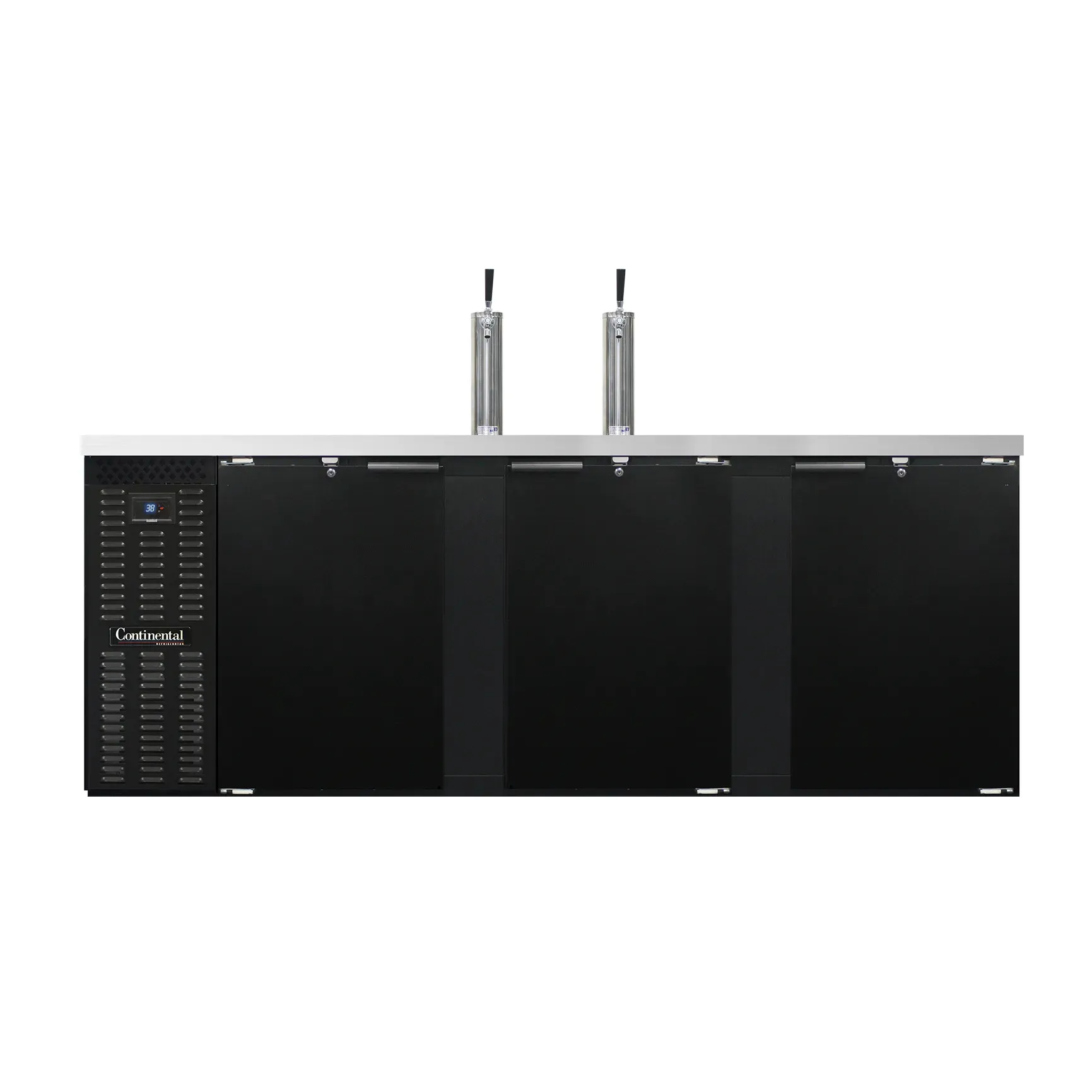 Revolutionize your cooking setup with the Continental Refrigerator KC90N Draft Beer Cooler. This top-of-the-line keg cooler is designed to meet the demands of a busy commercial restaurant. With a spacious 35.0 cu. ft. capacity, it can hold up to four barrels or five straight wall kegs, ensuring you always have a variety of beers on tap for your customers. The stainless steel top features two columns and a drainer, providing a convenient space for pouring and serving. The three doors are equipped with locks to keep your inventory secure. The electronic controller with a digital display and hi-low alarm allows for precise temperature control and monitoring. Made in the USA, this keg cooler is built to last with a black enamel finish exterior and a galvanized interior with a reinforced stainless steel floor. Trust Continental Refrigerator to deliver reliable and efficient refrigeration solutions for your restaurant.