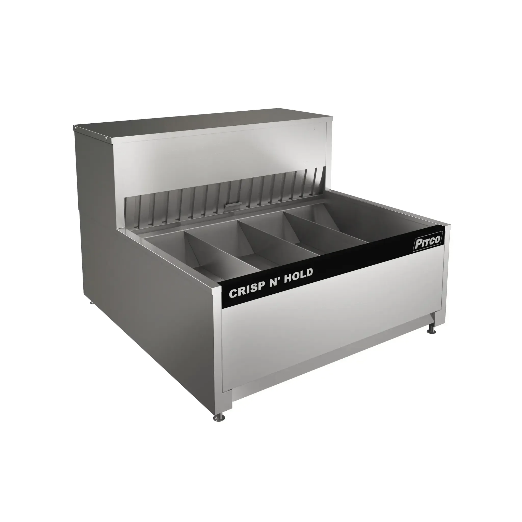 Countertop unit to hold finished products and maintain heat and texture. Removable stainless steel food grate. Pull out pan for easy cleaning.