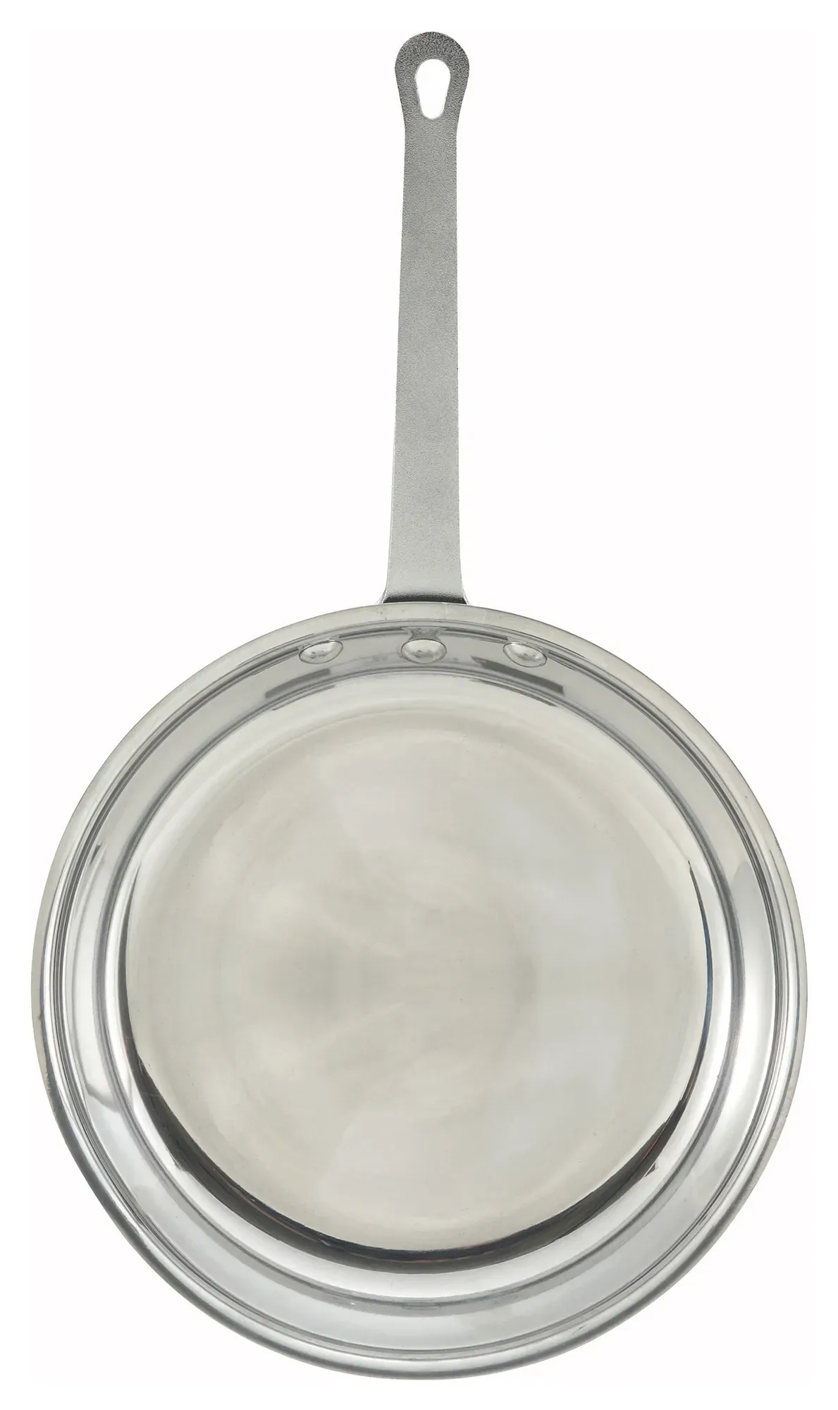The mirror finish not only adds a touch of elegance to your kitchen but also makes cleaning a breeze, maintaining its pristine appearance even after extensive use. The riveted handle provides a secure and comfortable grip, allowing chefs to maneuver the pan with ease and confidence, whether they're sautéing vegetables or searing meats.